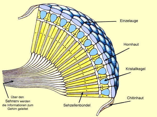 Es besteht aus einer Anzahl von Einzelaugen, den Ommatidien.