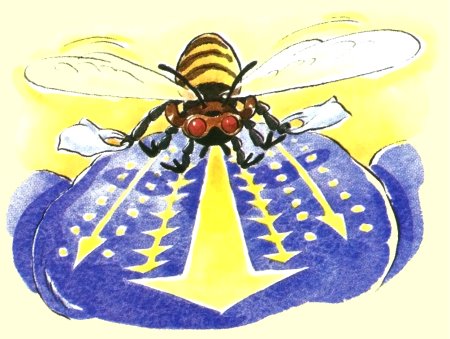 zurückstrahlen. Honigbienen sehen die Linien und folgen ihnen. |