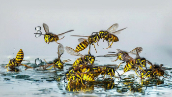 Wunderschöne Makroaufnahmen verschiedener Hymenopteren in unterschiedlichen Positionen und Haltungen, aus deren Aufnahmen man ein olympisches Sportereignis kreieren kann.