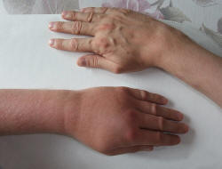 auf beide Gifte, also auf Bienen- u n d Wespengift, allergisch reagieren.