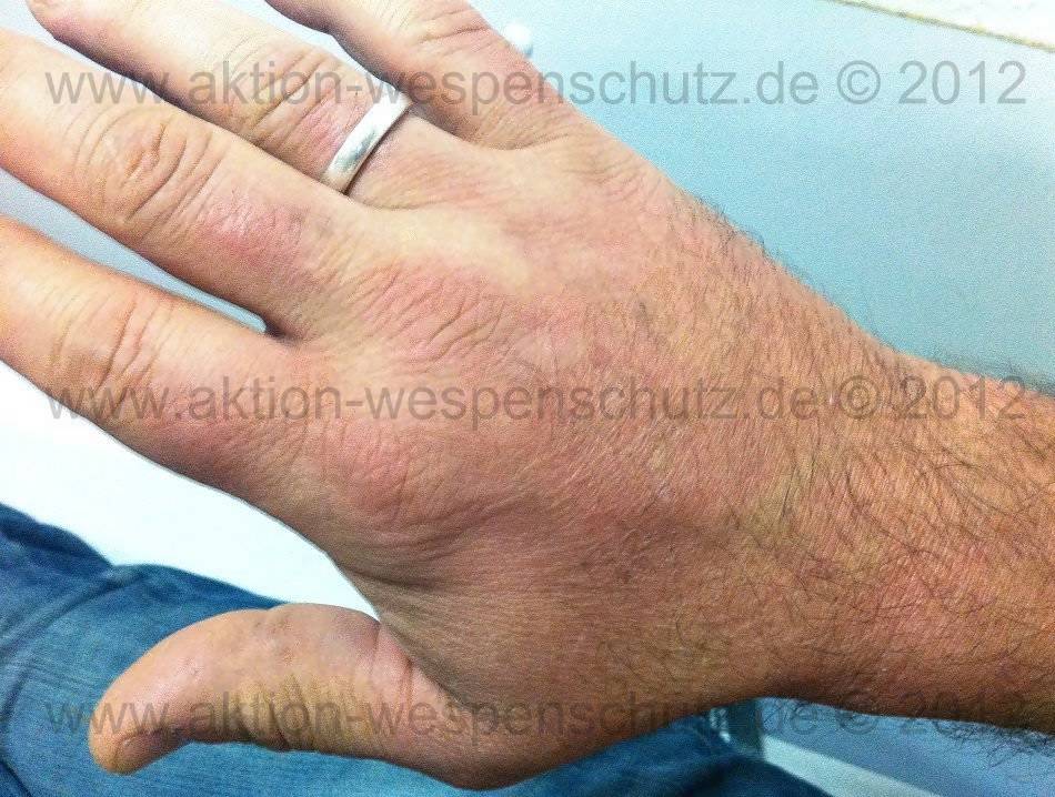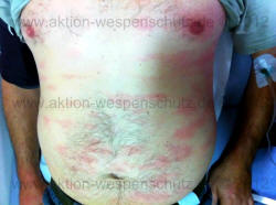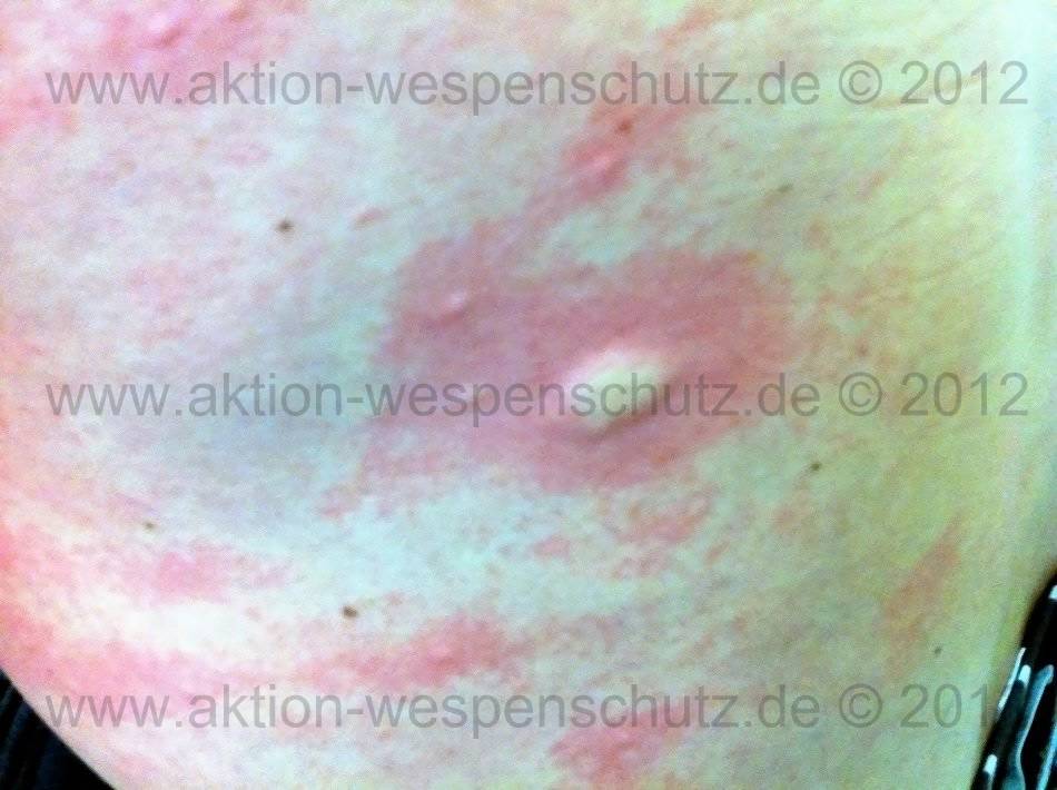 Wespengiftallergiker treten Reaktionen nach einem Wespen- oder