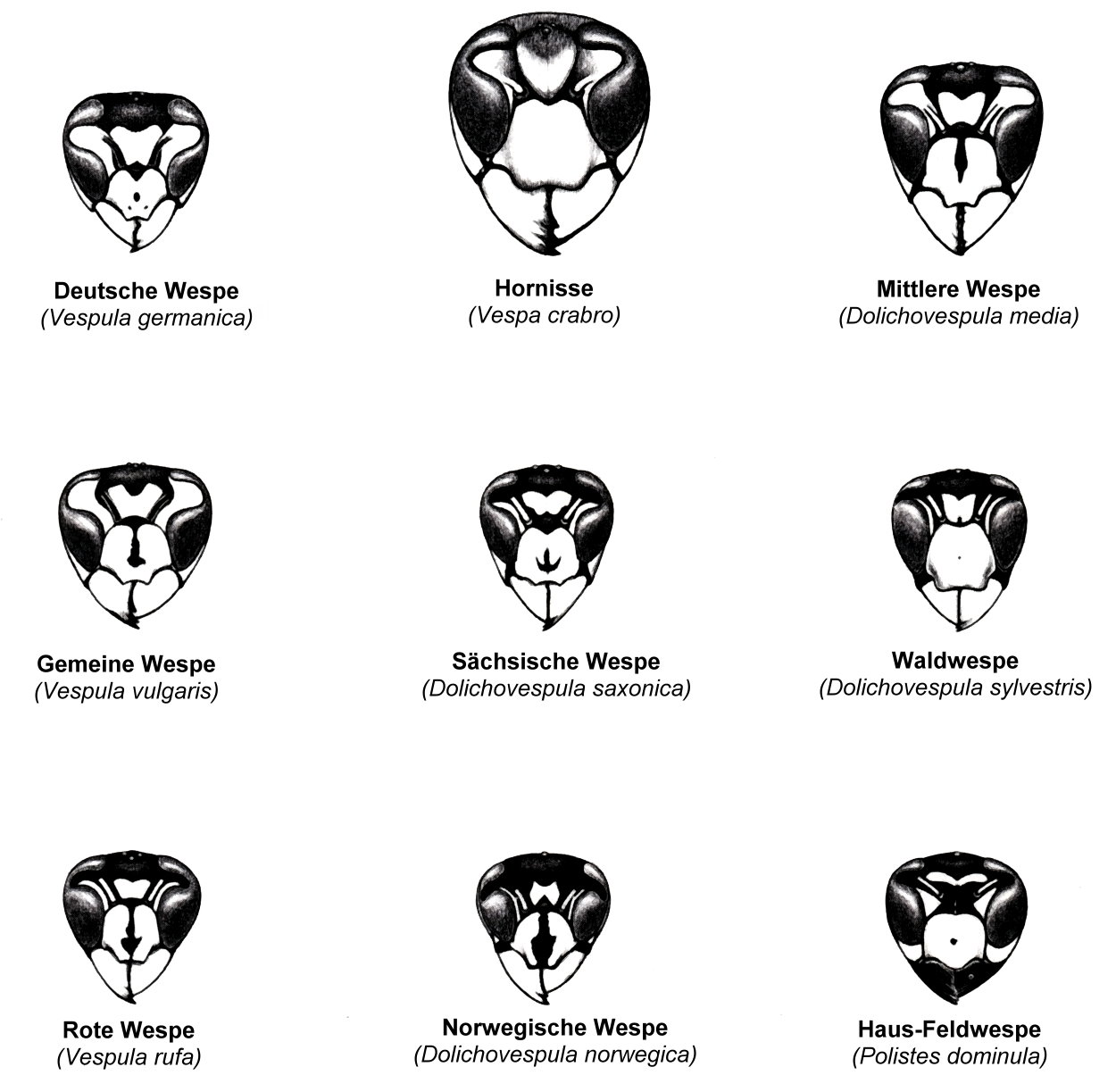 behutsam eine Wespe abfangen und die Art nach der Kopfschildzeichnung Bestimmen.