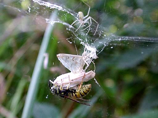 fliegen immer wieder die verschiedenen Spinnennetze ab und suchen sich