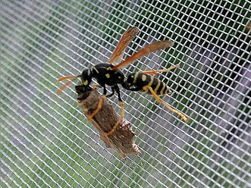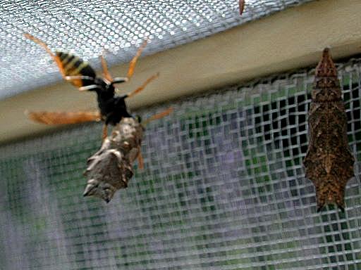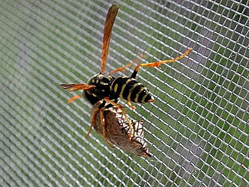 Wespe verzweifelt den Ausgang, wollte aber ihre Beute keinesfalls wieder