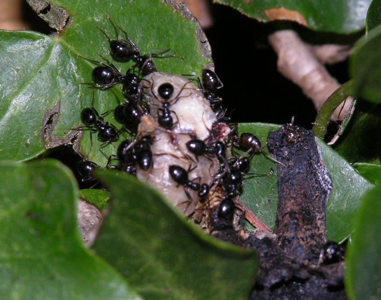 ...und wenn mal eine Larve aus dem Nest geworfen wird, sind die Verwandten Ameisen da.