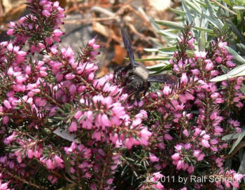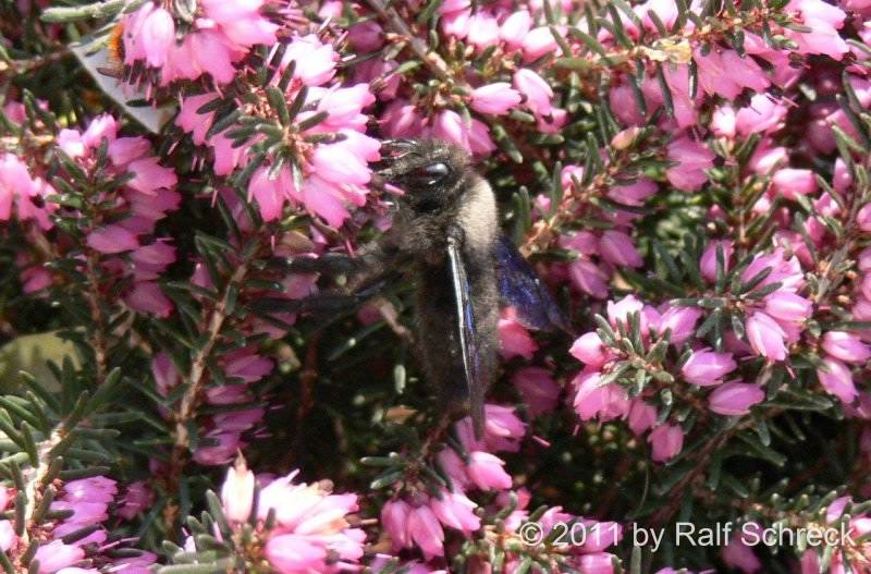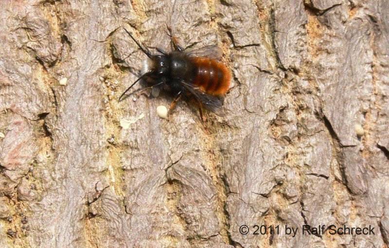 Erste Aufnahmen der Blauen Mauerbiene (Xylocopa violacea) und der Gehörnten Mauerbiene (Osmia cornuta)