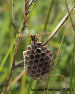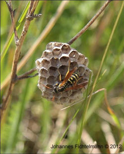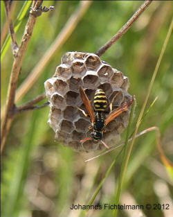 An den Nestern der Heide-Feldwespe (Polistes nimpha)