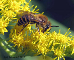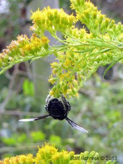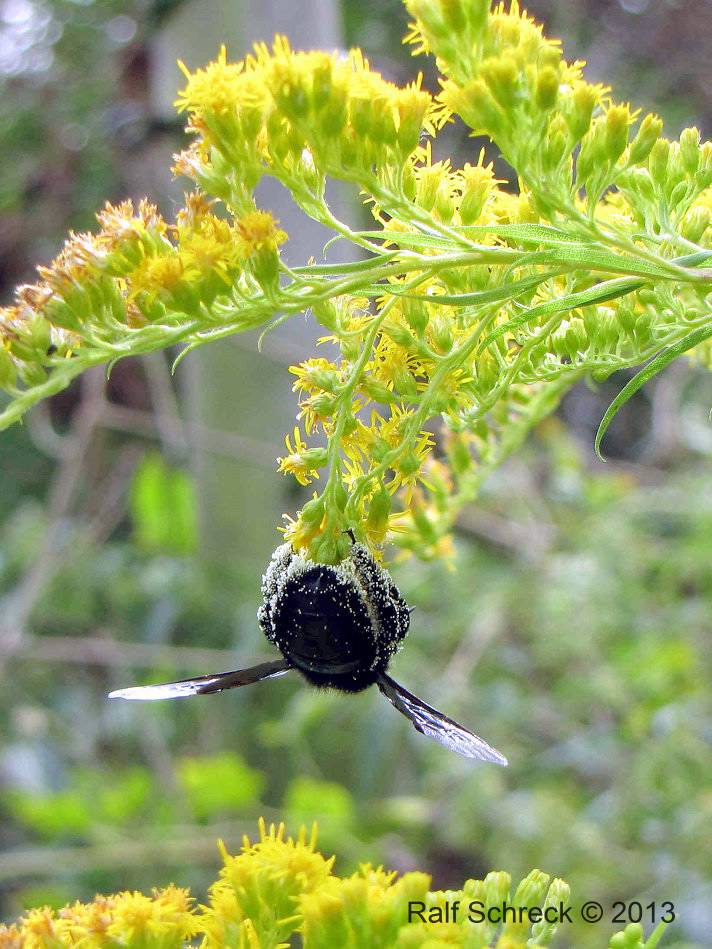 Obwohl die Goldrute (Solidago canadensis), als Neophyt, die heimische Pflanzenwelt bedrängt, ist sie doch Nahrungsquelle für viele Insekten.