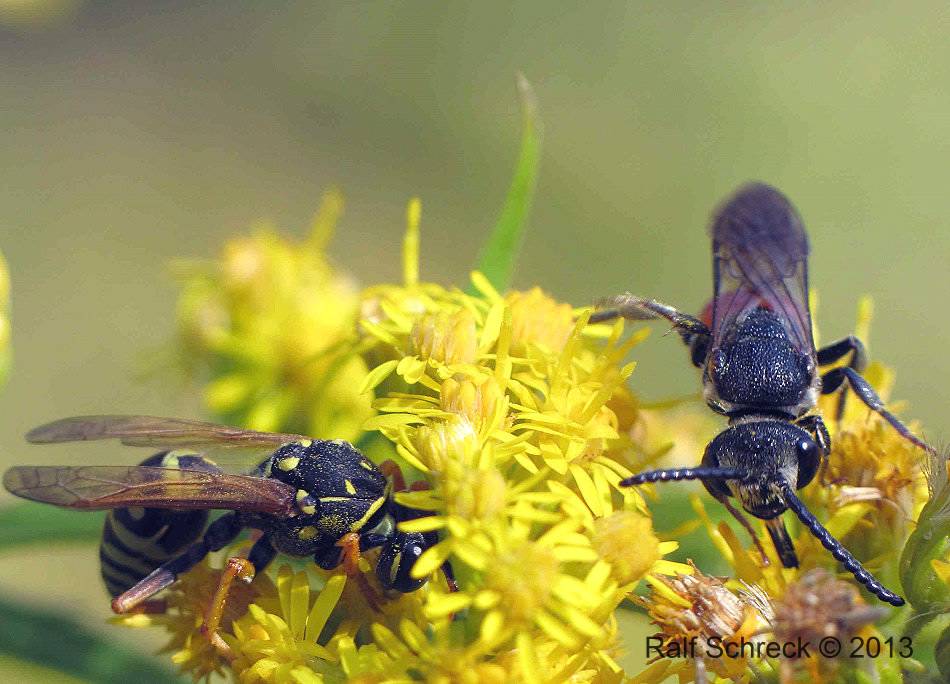 Blaue Holzbiene, Pillenwespe, Efeu Seidenbiene, Blutbiene, Grabwespe, Feldwespen (stylopisierte), ...