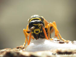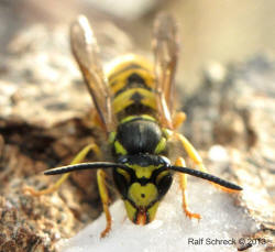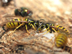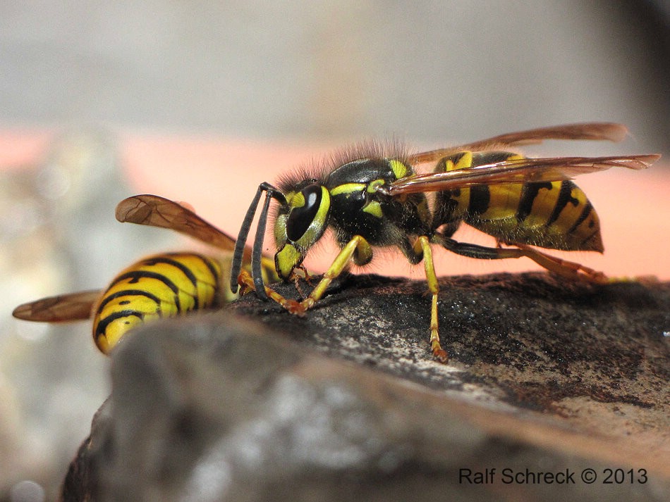 bei 23 Grad finden sich einige Wespen an der Futterschale ein, um