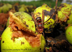 Temperaturen finden sich viele Wespen an reifem Fallobst und süßen