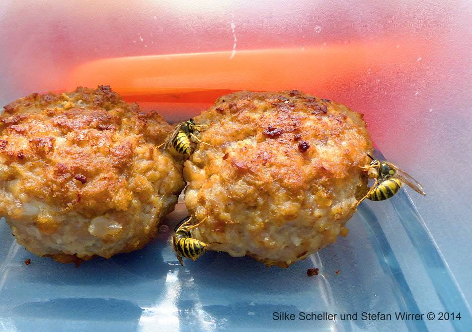 jedoch, wenn beim Essen im Freien sich Wespen über Frikadellen, Früchte
