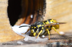 Bei der Sächsischen Wespe fliegen schon fleißig die