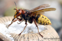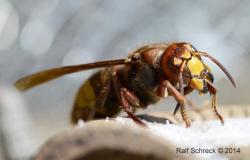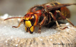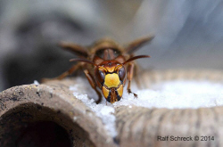 Hornissenköniginnen fliegen gerne die Futterstelle an.