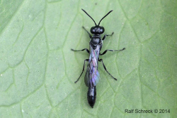 Er parasitiert solitär lebende Bienen oder Wespen, indem