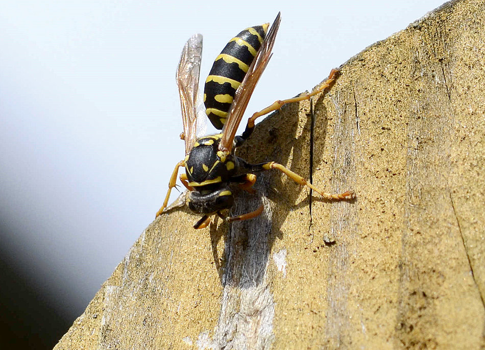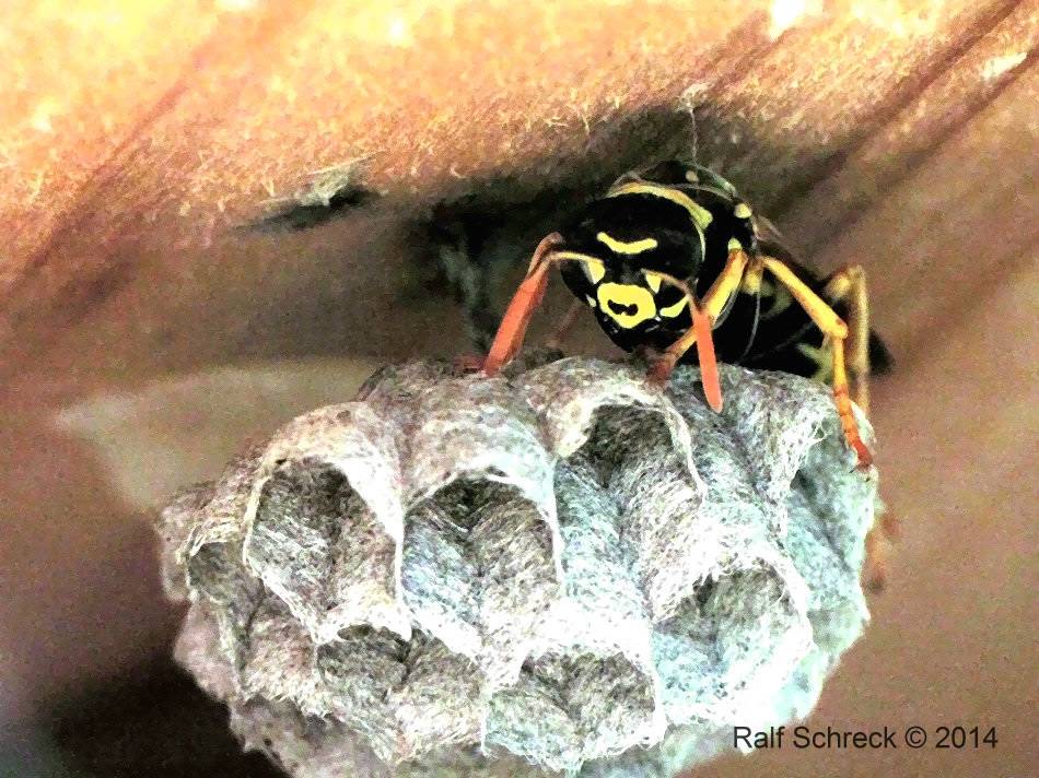 Auch die Haus-Feldwespe ist eifrig dabei,