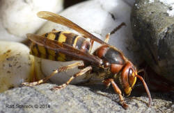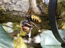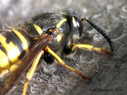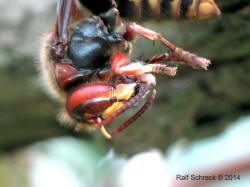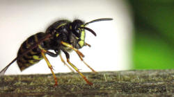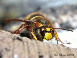 Hierzu raspelt eine Arbeiterin, der Sächsischen Wespe,