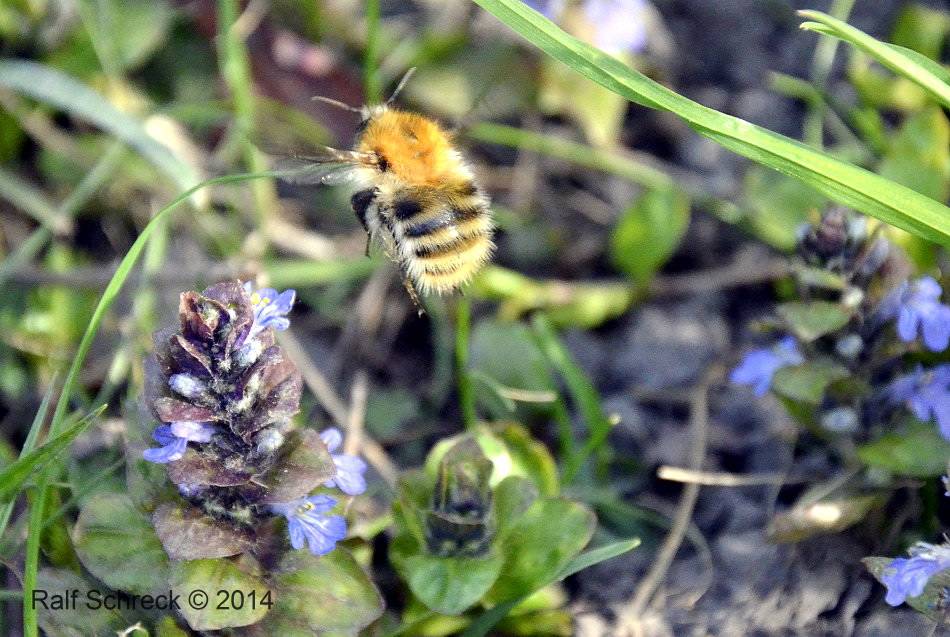 regelmäßiger Besucher an der hölzernen Wildbienennisthilfe.