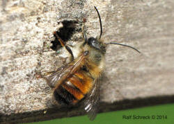 Männchen der Roten Mauerbiene (Osmia bicornis) |