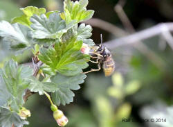 Pflanzennektar wird gesammelt und dabei noch die Stachelbeere