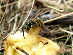Gewöhnliche Apfelwespe. Die verzehrt das