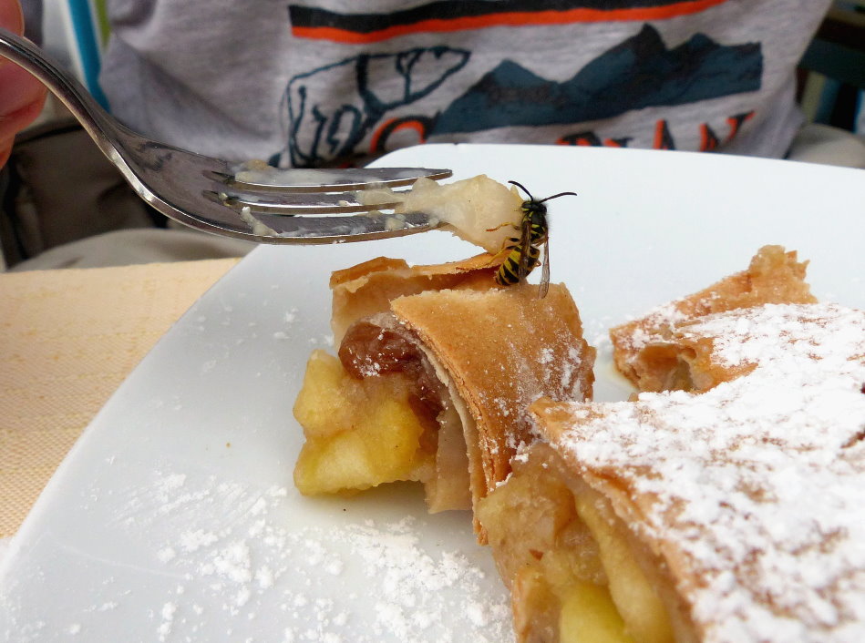 Apfelstrudel schwindet, um so häufiger kommen die Wespen. Eigentlich