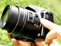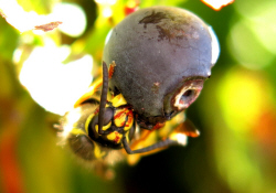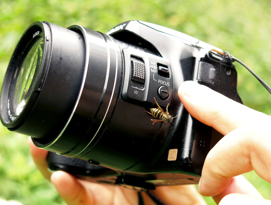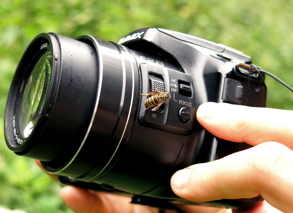Die Wespe schaffte es noch nicht einmal den Auslöser zu bedienen.