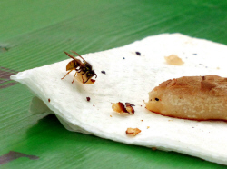 Apfelstrudelwespe. Sie wartet geduldig bis die