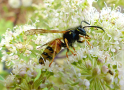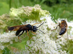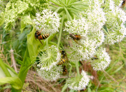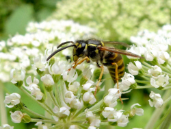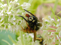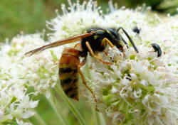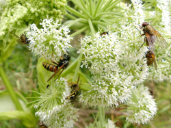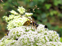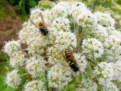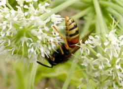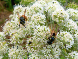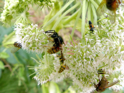 Beutetieren und anderen Wespen auf den Blüten und labten sich am