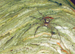 "Achtbeinige Wespe" = Spinne auf dem Nest der