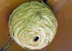 Wespe einordnen, die das Wespennest auf unseren Fotos bewacht. Deren