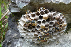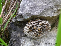 Dieses frei hängende Feldwespennest der Heide-Feldwespe wurde im August 2009, in den Bergen bei Mitteregg nahe Berwang (Tirol) aufgenommen