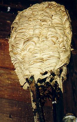 An einer Gardinenstange Nicht schlecht staunte eine Familie im 1. OG ihres Reihenhauses, als sich im freistehenden Zimmer ihrer umgezogenen Tochter, plötzlich ein Hornissennest an der Gardinenstange befand. Als Einflug wurde das zur Lüftung gekippte Fenster genutzt. Auf den Waben, die innerhalb von wenigen Tagen entstanden, befanden sich einige Arbeiterinnen. Die Königin war noch nicht zu entdecken. Nach der Beratung erklärten sich die Wohnungseigentümer bereit, das Hornissennest bis zum Einzug des kompletten Volkes, zu dulden. Etwa vier Wochen später, befanden sich die Königin und deren Volk, sowie Eier und Puppen der verschiedenen Stadien auf den Waben, des mittlerweile gewachsenen Hornissennestes. Das Volk konnte jetzt ohne Probleme umgesiedelt werden.