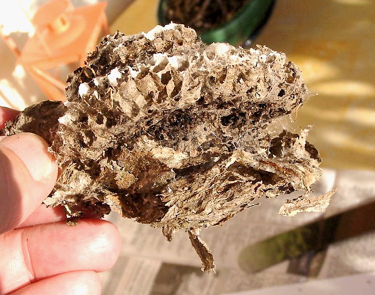 einzelnen Wabenetagen mit einem Gespinst, das sehr zäh und