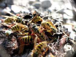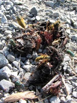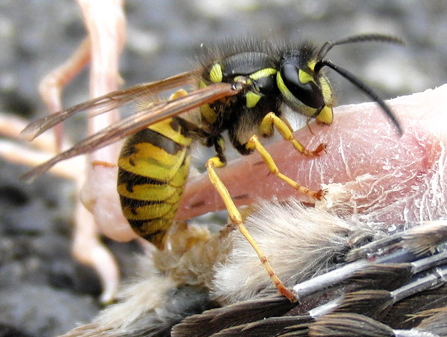 Neben der Bestäubung von Pflanzen, dem Vertilgen von Unmengen an Insekten beteiligen sich Wespen auch als "Gesundheitspolizei" beim Verwerten von toten Tieren.