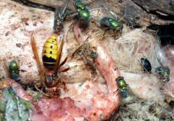 Sehr selten findet man andere Wespenarten oder die Hornisse auf einem Tierkadaver.