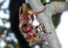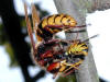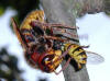Hornisse beim Zerteilen einer erbeuteten Wespe