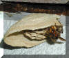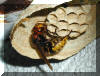 Nachdem das erste Ei gelegt ist, steht nun die Nesterweiterung an. Hierzu besorgt die Königin von einem morschen Baum Baumaterial, das sie mit ihrem Speichel zu einem "Mörtelbrei" vermischt und am Nest anbringt.