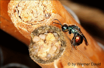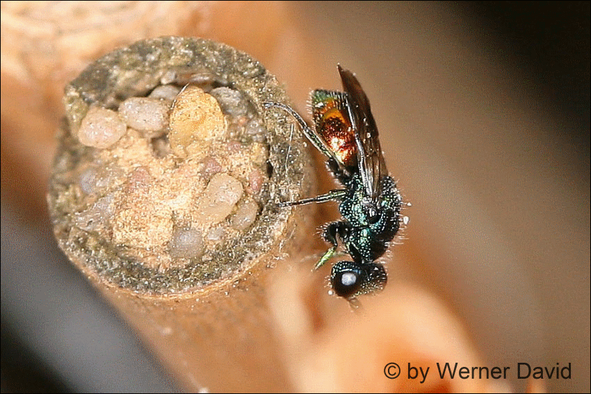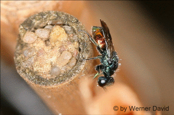Alle Goldwespen haben eine parasitische Lebensweise,
