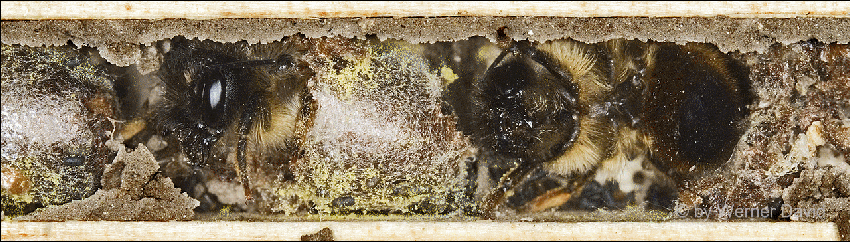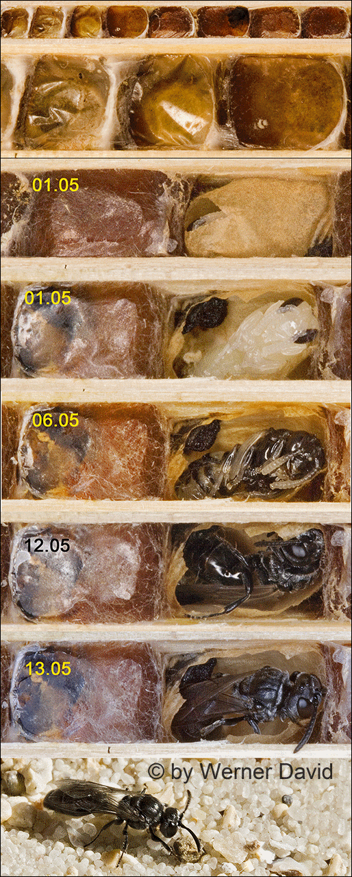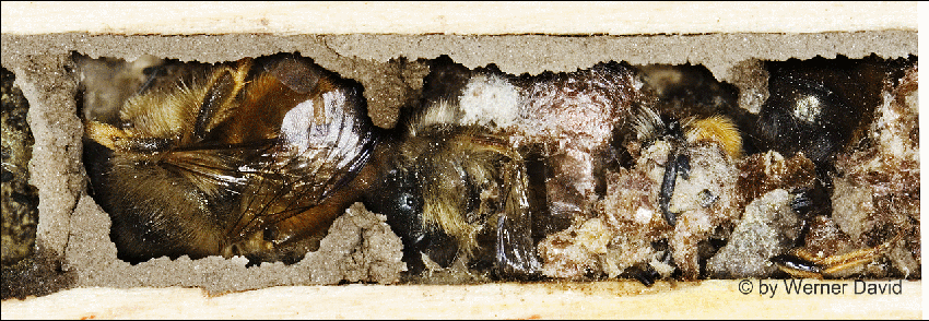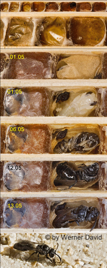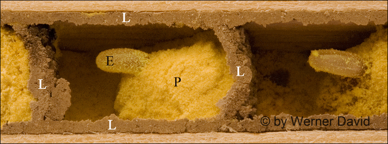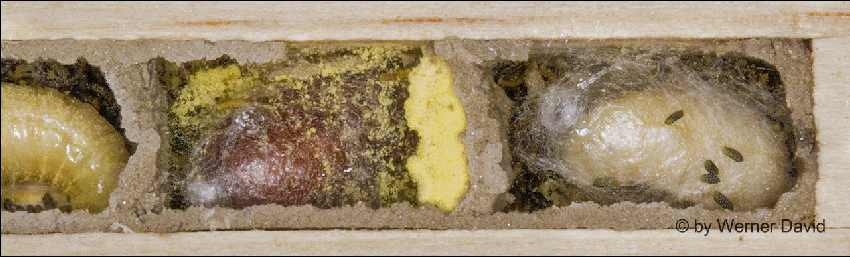 angelegt. Die Zellwände und der Nestverschluss werden mit einem feinen,