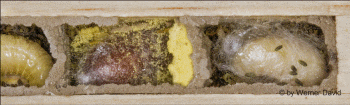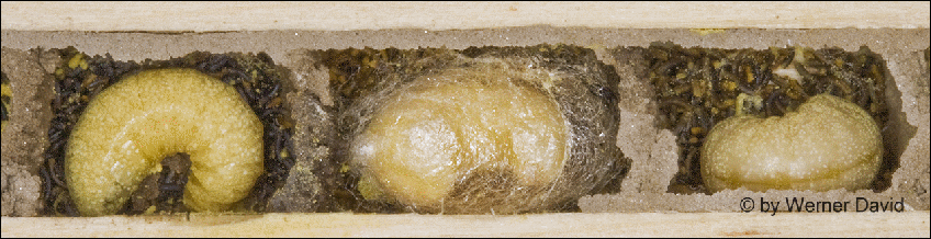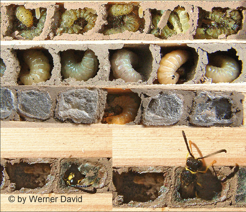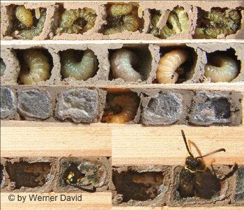 Larvenfutter bestückt und mit einem Lehmdeckel verschlossen.