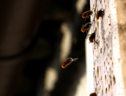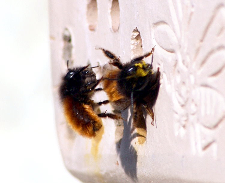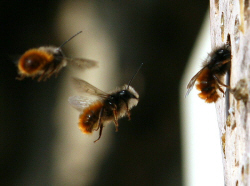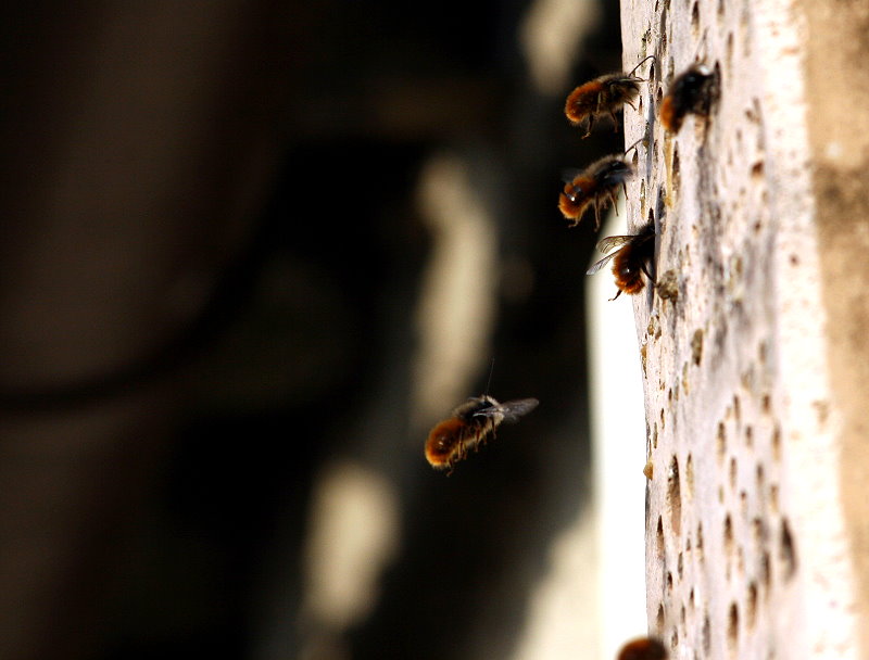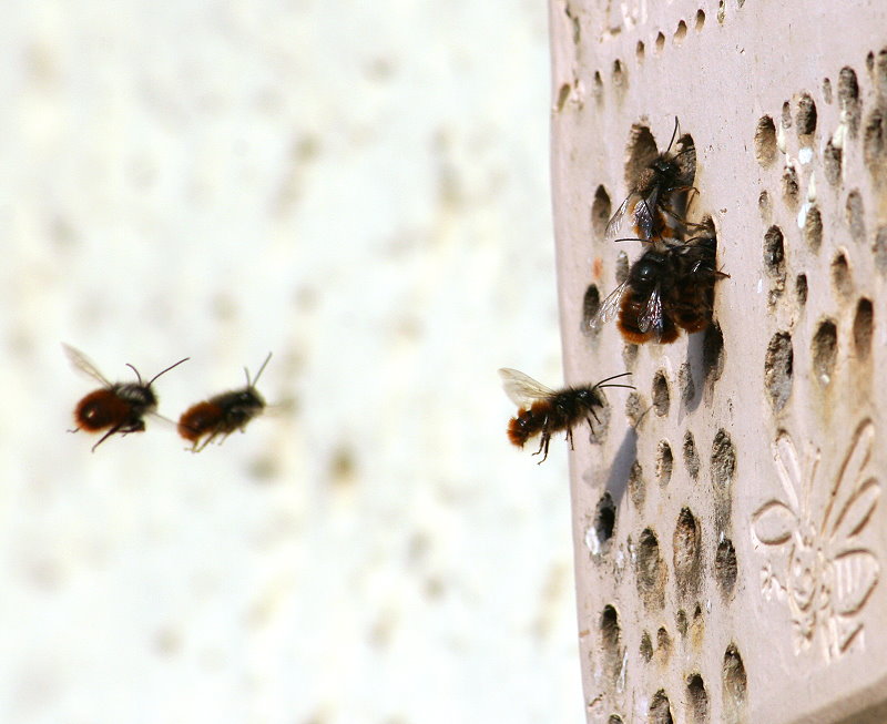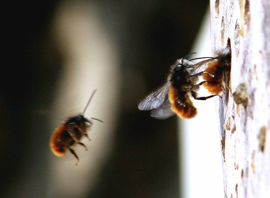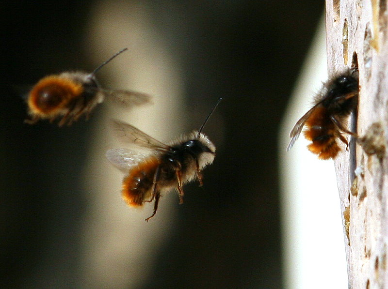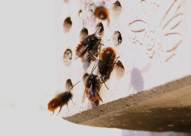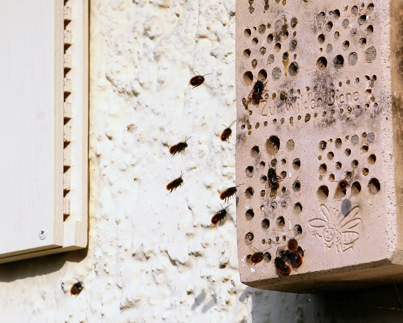 auch Mauerbienen, vor allem die Rostrote Mauerbiene.