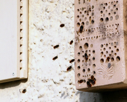 Leben an der Wildbienennisthilfe.