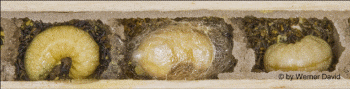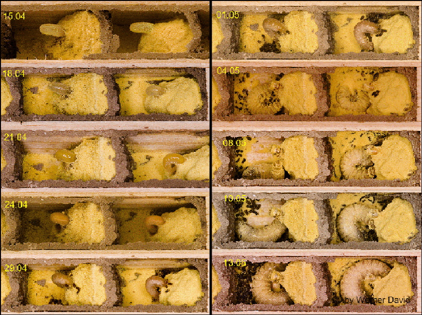 Die Larven ernähren sich von der eingebrachten, eiweißreichen Kost,