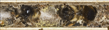 fertig gestellten Kammern bestücken die Wildbienenweibchen mit einem