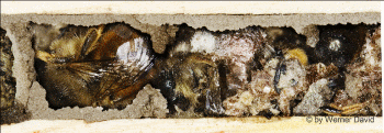 Nestbau ausgenagt. Pro Nest werden 8 bis 10, maximal 20 Zellen angelegt,