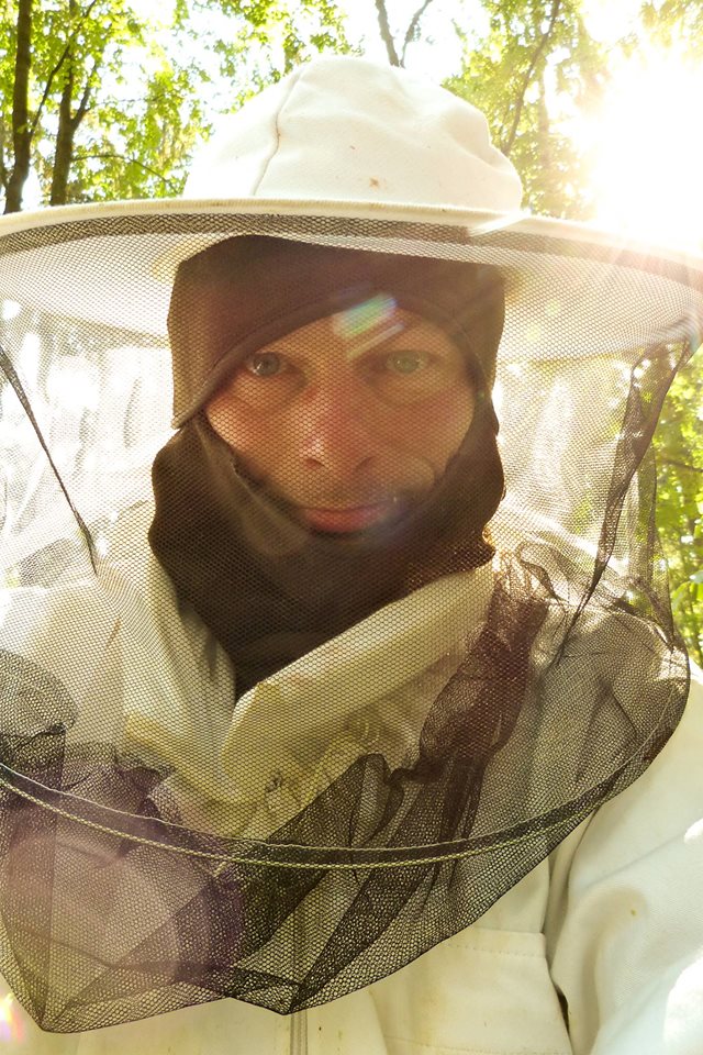 sogar eine Imkerausrüstung besorgt, um für seine Makroaufnahmen, so nah