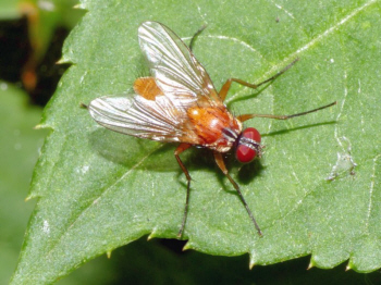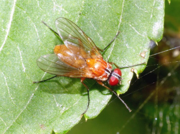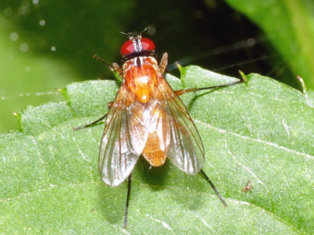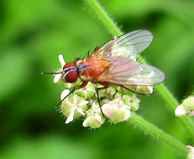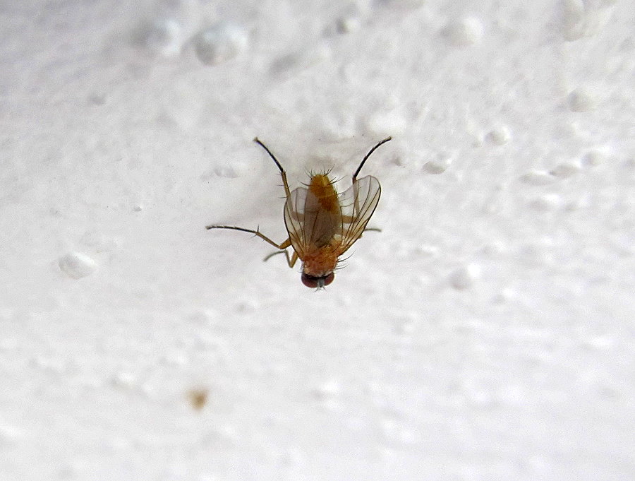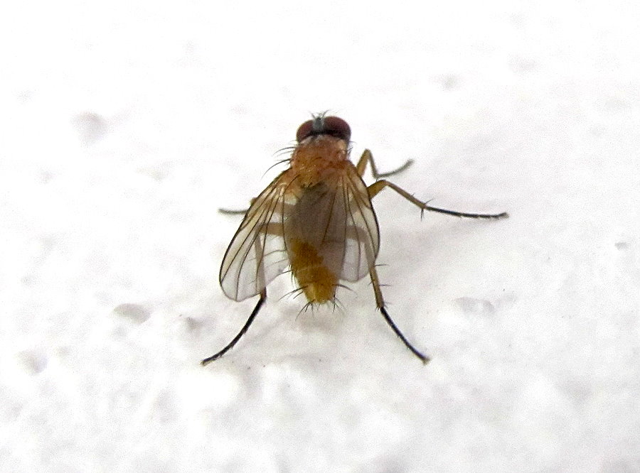 Der Rücken und Hinterleib ist sichtbar mit dunklen Borstenhaaren versehen.