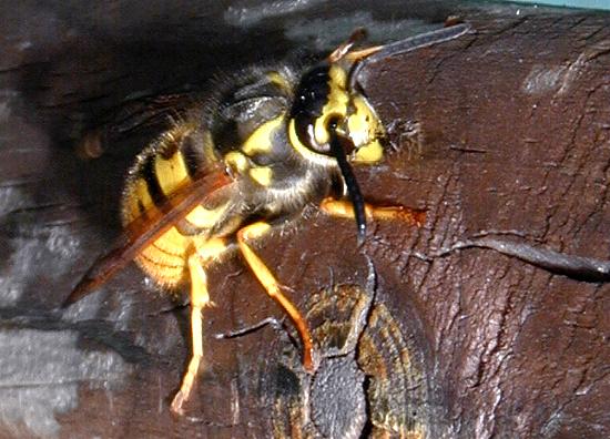 Königin der deutschen Wespe sammelt Baumaterial