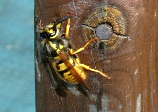 Nachdem ich am 19. April die erste Wespenkönigin in meinem Garten beobachten konnte, entdeckte ich am 28. April eine Wespenkönigin beim Sammeln von Baumaterial.